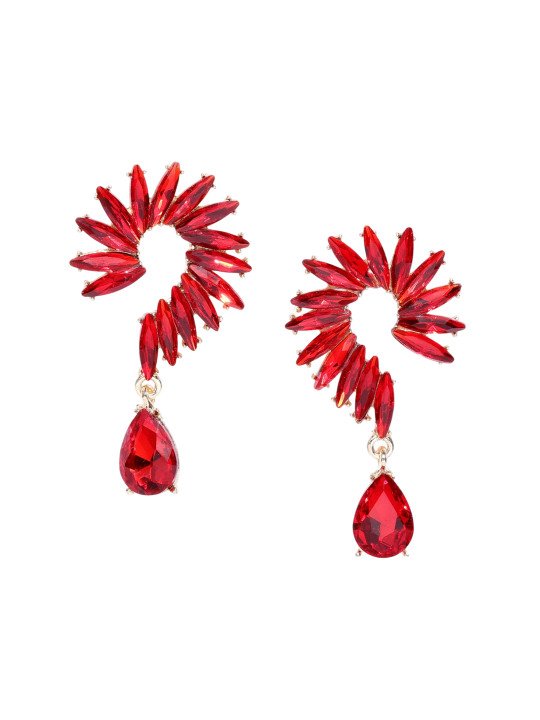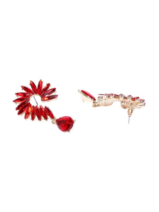 Gold-Plated Artifical Stones Studded Contemporary Drop Earrings