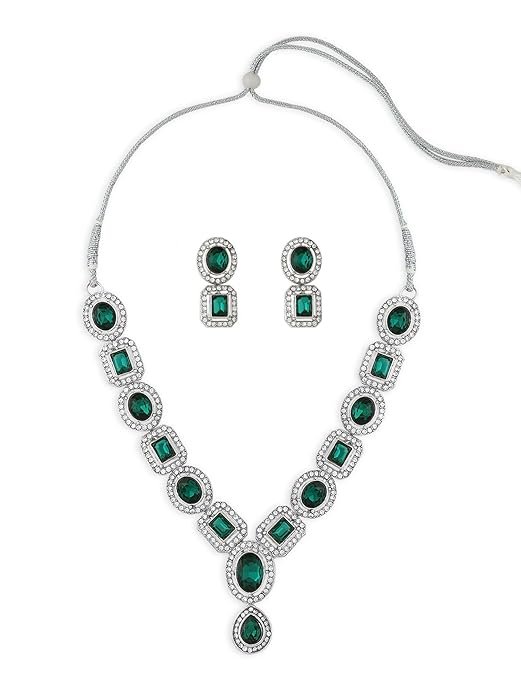 - Color: Green, Plating: Silver, Material: Alloy, Stones: Artificial Stones